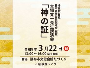 ~神霊教 教祖 日本精神復興促進会総裁 大塚寬一先生 講演会~ 日時:令和8年3月22日(日)午後1時開演(正午 開場) 会場:調布市文化会館たづくり8階映像シアター 交通:京王線 …